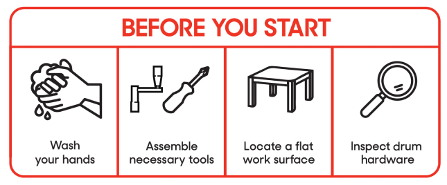 Clean off the bearing edges and counter hoop before installation. Remove any lint or debris from inside the shell.