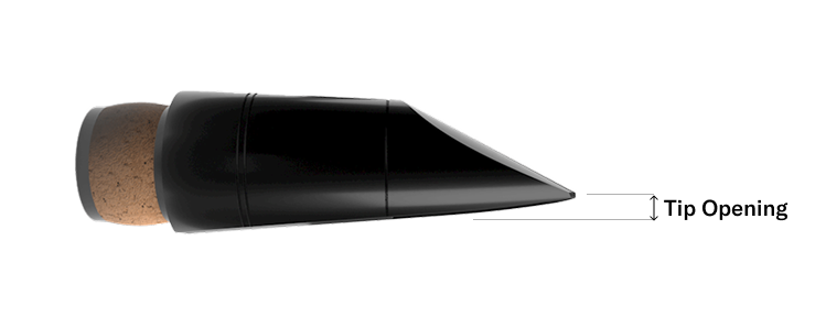Mouthpiece facing refers to the curve that extends away from the reed. This curve is often described by the tip opening: the space between the tip of the reed and the tip of the mouthpiece.