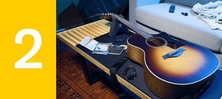 3. Set up a stable surface, such as a table or workbench, to securely hold your guitar.