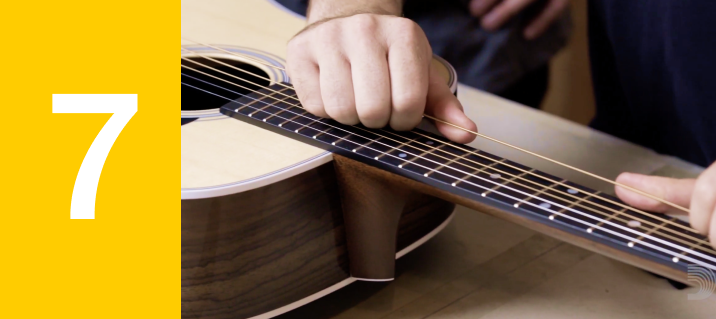 1. After all the new strings are attached and tuned to pitch, gently stretch each string to help it settle and stabilize.