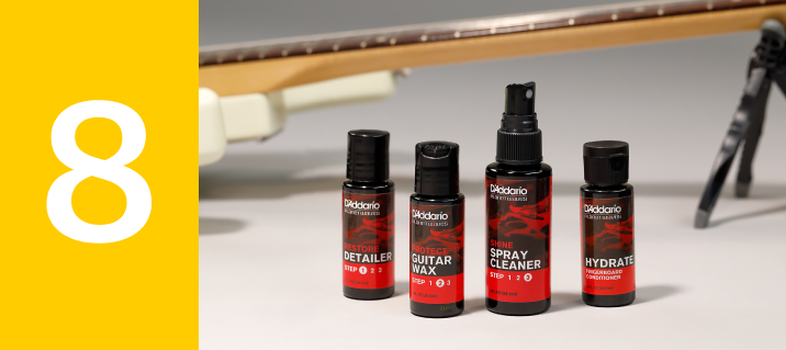 2. If desired, apply a small amount of guitar polish to a clean cloth and gently buff the guitar's body to restore its shine.